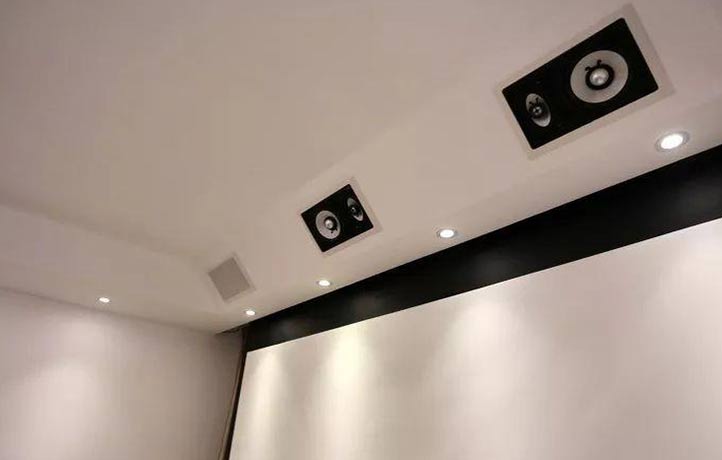 將7只Earthquake Sound大地震 Image-846X安裝在吊頂內(nèi)。在前墻的吊頂處做了特別設(shè)計,30°的向下傾斜的角度,可以正對著視聽位置,7只完全相同的揚聲器,給影院系統(tǒng)帶來了統(tǒng)一的前后連貫的音色。Image-846X入墻喇叭采用高彈性單元材質(zhì)、復(fù)合驅(qū)動,能夠達到低失真。此外,擁有PistonMax重低音設(shè)計,可以獲取中低頻的準確。