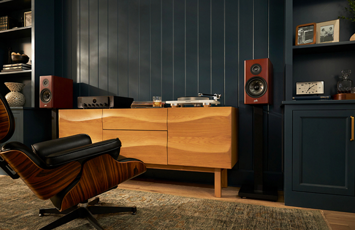 ●箱體繼承Polk的標(biāo)志性櫻桃木飾面